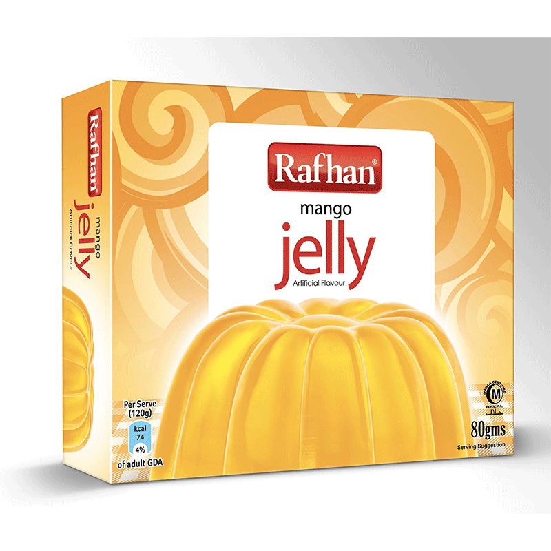 Rahfan Mango Jelly brings vibrant tropical flavour to your table in a convenient 80g pack. Made with real mango essence, this delightful jelly offers a smooth, fruity taste that's perfect for desserts, snacks, or adding to your favourite dishes. Light, refreshing, and easy to prepare, it's an ideal treat for the whole family. Enjoy authentic mango goodness in every spoonful.