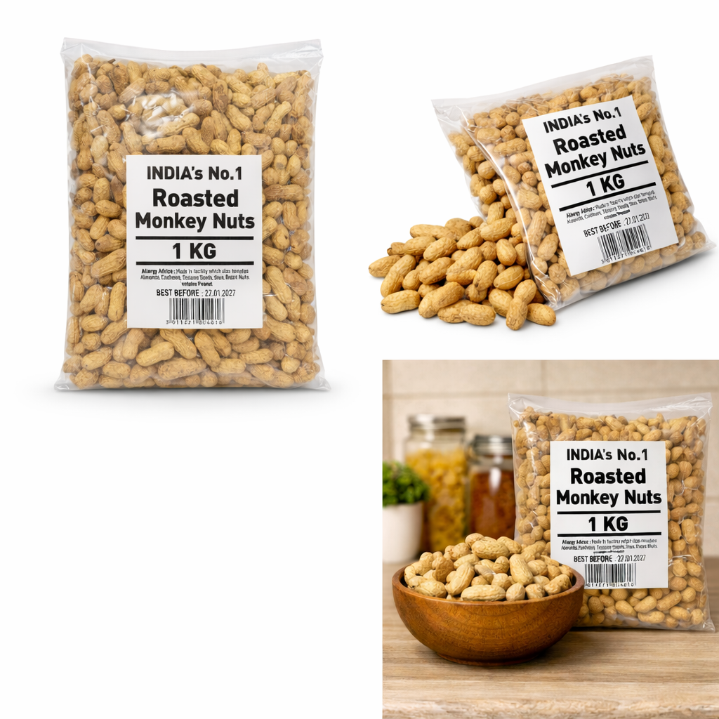 Bring home the classic crunchy snack with Food Factory Monkey Nuts 1kg — peanuts in shell (also called Moongfali / Groundnut / मूंगफली / छिलके वाली मूंगफली). A big, value pack that’s perfect for everyday munching, parties, and family snack bowls.