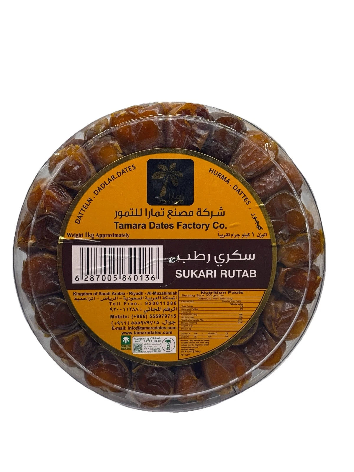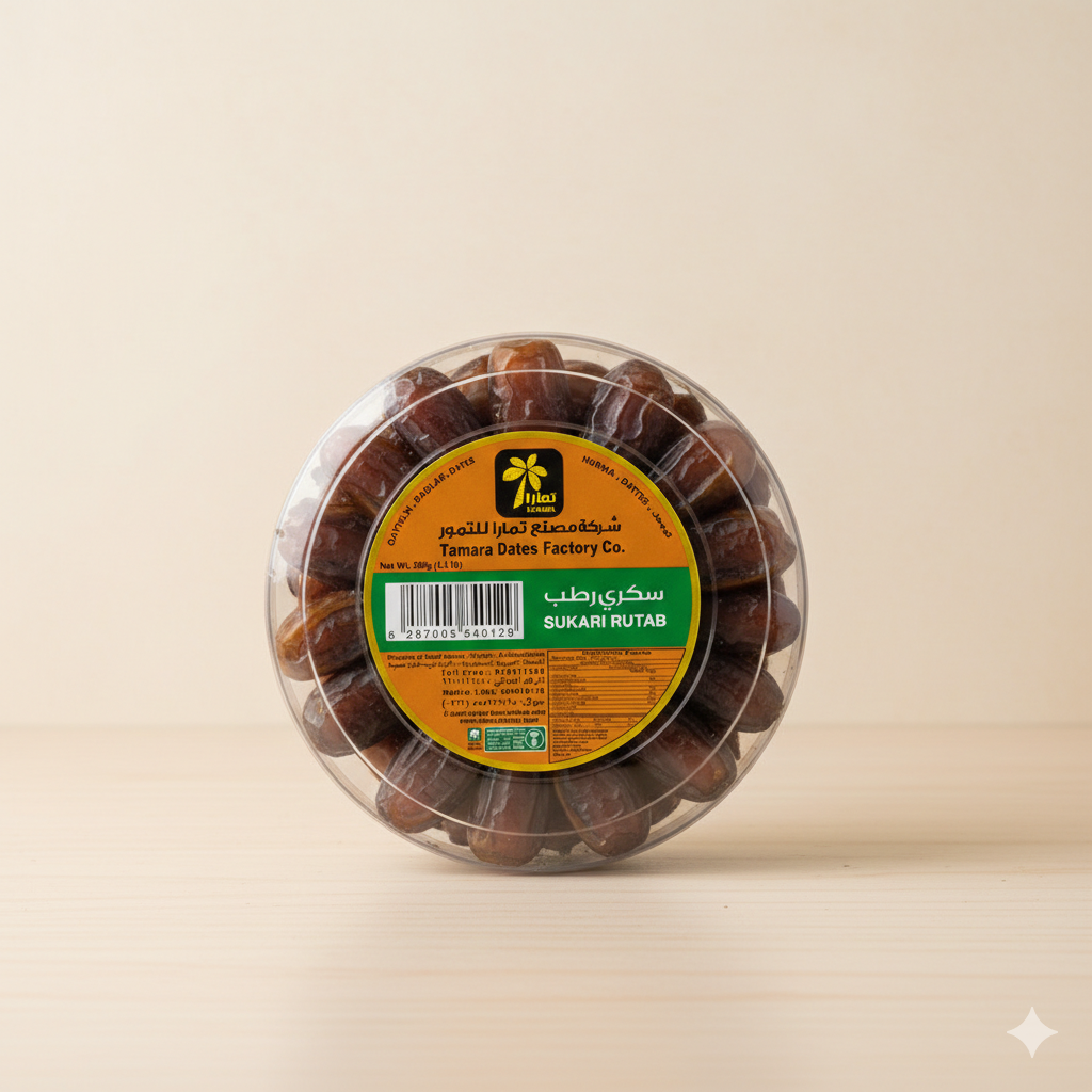 Tamara Dates Factory Sukari Rutab Dates 500g Discover the delicate sweetness of Sukari Rutab dates from Tamara Dates Factory, presented in a convenient 500g package. These premium soft dates are harvested at peak ripeness, delivering a buttery texture and refined flavour profile that distinguishes them from standard varieties. Sukari dates are naturally nutrient-dense, providing potassium, magnesium, and polyphenols alongside their natural sugars. Ideal for those seeking authentic Middle Eastern dates with superior quality and taste. Perfect for direct consumption, pairing with coffee, or incorporating into traditional recipes and contemporary cuisine.